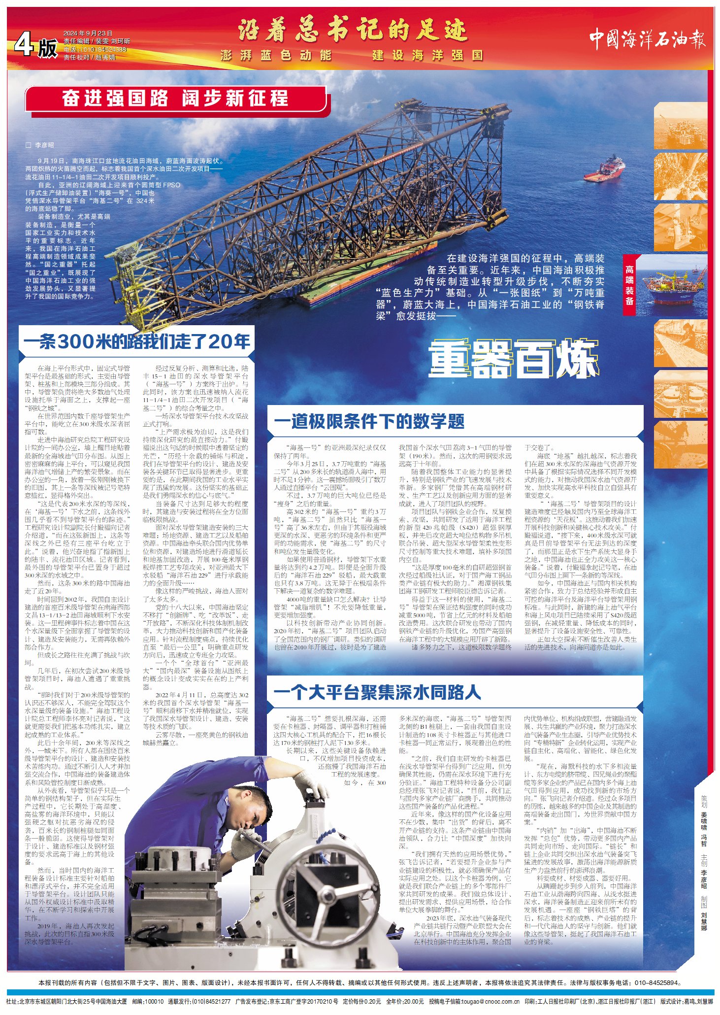 近年來,中國海油牢記總書記囑托,積極打造原創(chuàng)技術(shù)策源地,勇當深水油氣裝備現(xiàn)代產(chǎn)業(yè)鏈鏈長,推動產(chǎn)業(yè)鏈自主化、高端化、智能化、綠色化。隨著亞洲第一、世界領(lǐng)先的兩個“國之重器”投用,我國成功開創(chuàng)深水油田經(jīng)濟高效開發(fā)的全新模式,具備了根據(jù)不同海域、不同油田自主設(shè)計制造不同類型深水油氣裝備的能力,為經(jīng)濟高效開發(fā)類似深水油氣田貢獻“中國方案”,對保障國家能源安全具有重要意義。