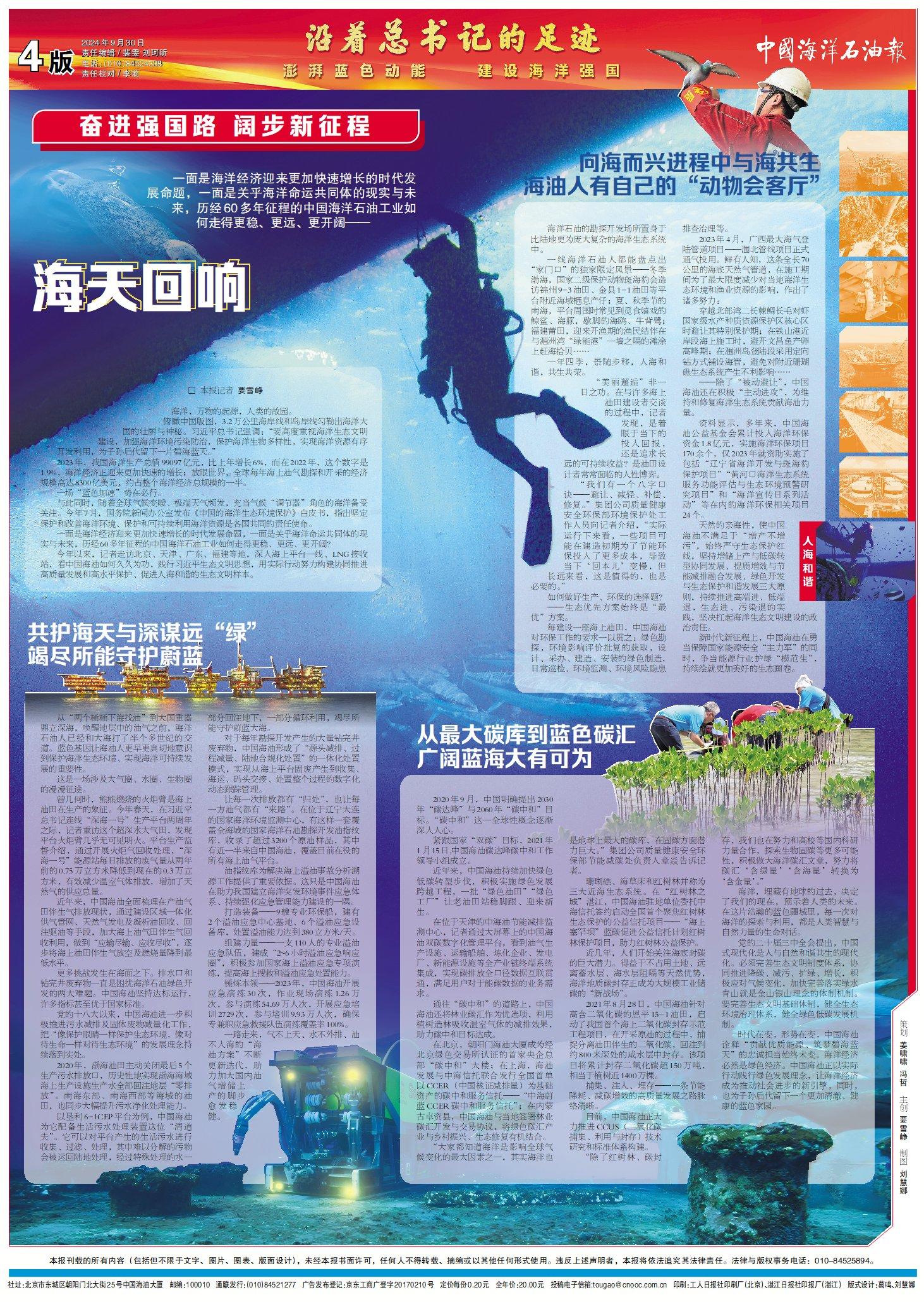 中國海油堅持開發(fā)與保護并重,積極通過高水平保護支撐海洋高質(zhì)量發(fā)展,讓氣、水、固體廢棄物等油田伴生物物盡其用,下大力氣保護海洋生態(tài)環(huán)境。